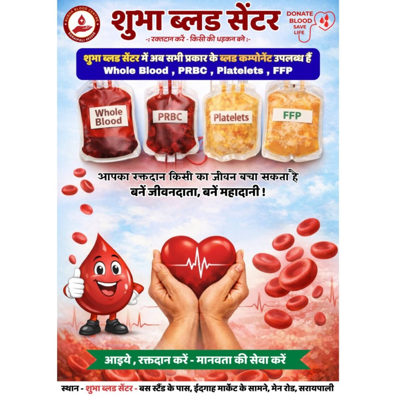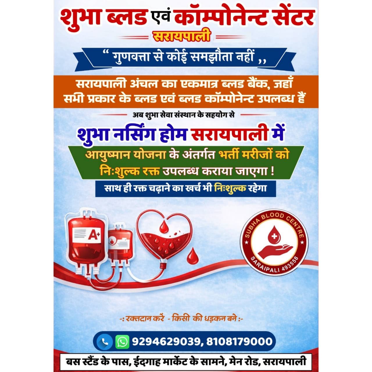 शुभा ब्लड एवं कॉम्पोनेन्ट सेंटर: अंचल का एकमात्र ब्लड बैंक जहां सभी प्रकार के ब्लड एवं ब्लड काॅम्पोनेंट उपलब्ध