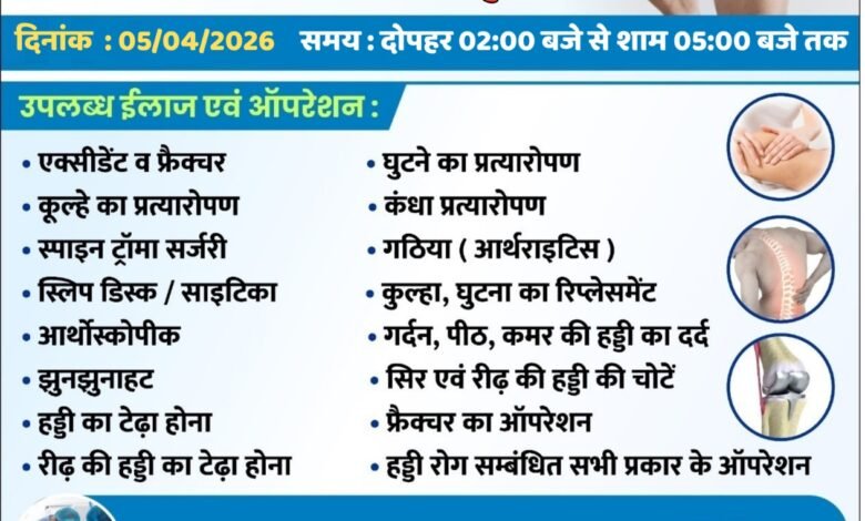 श्री मेडिशाइन हॉस्पिटल द्वारा आगामी 27 मार्च, शुक्रवार को भंवरपुर में आयोजित होगा निःशुल्क ब्रेन एवं स्पाइन सर्जरी परामर्श शिविर, अधिक जानकारी एंव पंजीयन के लिए अभी संपर्क करें…