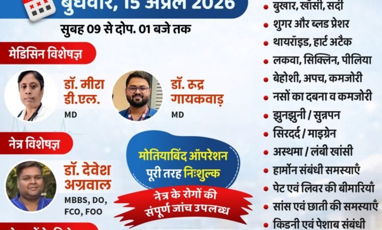 अग्रवाल मल्टीस्पेशलिटी हॉस्पिटल में 15 अप्रैल को विशाल निशुल्क स्वास्थ्य शिविर का आयोजन