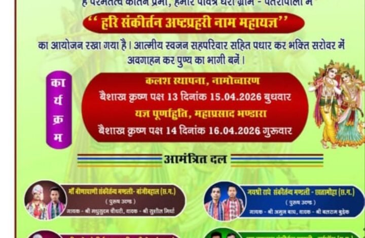 बसना: पतेरापाली में अष्टप्रहरी नामयज्ञ 15 को