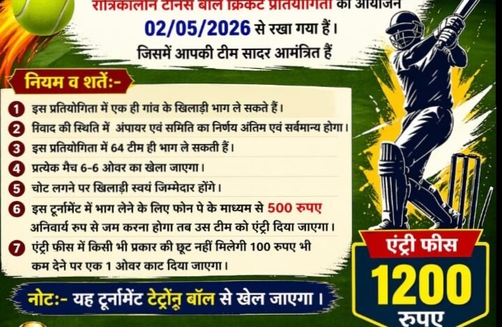 बसना: FCC क्रिकेट क्लब लोहड़ीपुर द्वारा रात्रिकालीन टेनिस बॉल क्रिकेट प्रतियोगिता का आयोजन