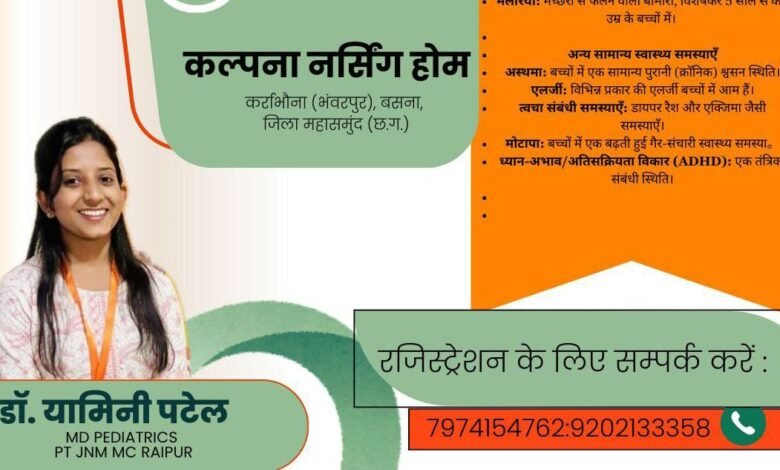 कल्पना नर्सिंग होम कर्राभौना/भंवरपुर : बच्चों की सेहत के लिए भरोसेमंद केंद्र कल्पना नर्सिंग होम में प्रतिदिन उपलब्ध हैं डॉ. यामिनी पटेल