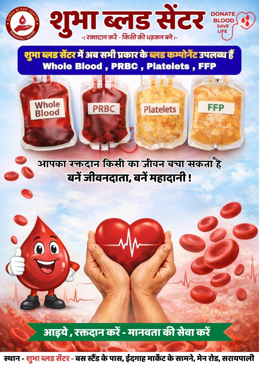 Home/सरायपाली/शुभा ब्लड सेंटर: सभी प्रकार के ब्लड कम्पोनेंट उपलब्ध सरायपाली शुभा ब्लड सेंटर: सभी प्रकार के ब्लड कम्पोनेंट उपलब्ध काका खबरीलालFebruary 26, 2026 2,110 Less than a minute Related Articles शुभा नर्सिंग होम: गर्भावस्था में ध्यान रखने योग्य बातें February 25, 2026 AD#1 Tagsशुभा ब्लड सेंटर: सभी प्रकार के ब्लड कम्पोनेंट उपलब्ध काका खबरीलालFebruary 26, 2026 2,110 Less than a minute Facebook Twitter WhatsApp Telegram Print