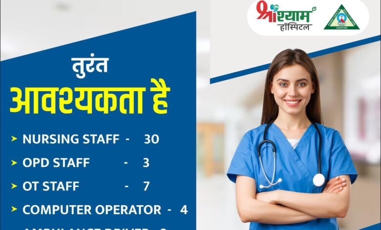 श्री श्याम हॉस्पिटल भंवरपुर में बंपर भर्ती: नर्सिंग स्टॉफ, कंप्यूटर ऑपरेटर, ओटी स्टॉफ, सहिंत ड्राइवर के 50 से अधिक पदों पर हो रही है बम्पर भर्ती, स्वास्थ्य सेवाओं में करियर बनाने का शानदार मौका अभी संपर्क करें…