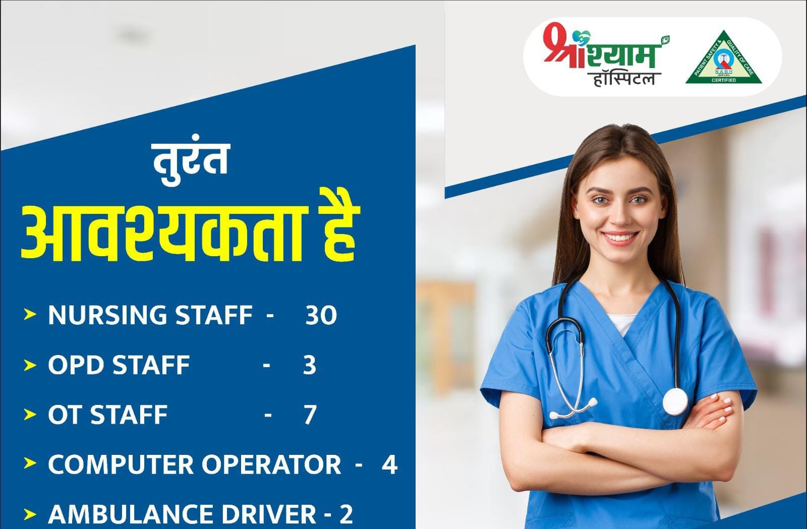 श्री श्याम हॉस्पिटल में बंपर भर्ती
