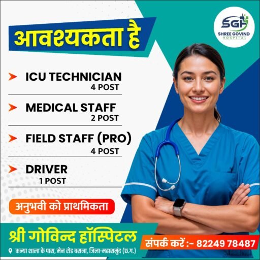 बसना: श्री गोविंद हॉस्पिटल में विभिन्न पदों पर निकली सीधी भर्ती, अनुभवी उम्मीदवारों को मिलेगी प्राथमिकता, अभी काल करें…