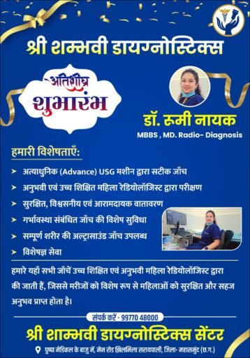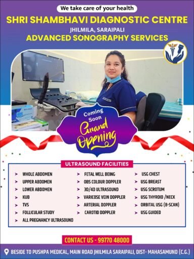 सरायपाली को मिलने वाली है बड़ी सौगात: अत्याधुनिक ‘श्री शम्भवी डायग्नोस्टिक सेंटर’ का जल्द होने जा रहा है भव्य शुभारंभ, जहां आपको मिलेगी हाईटेक अल्ट्रासाउंड सुविधाएं
