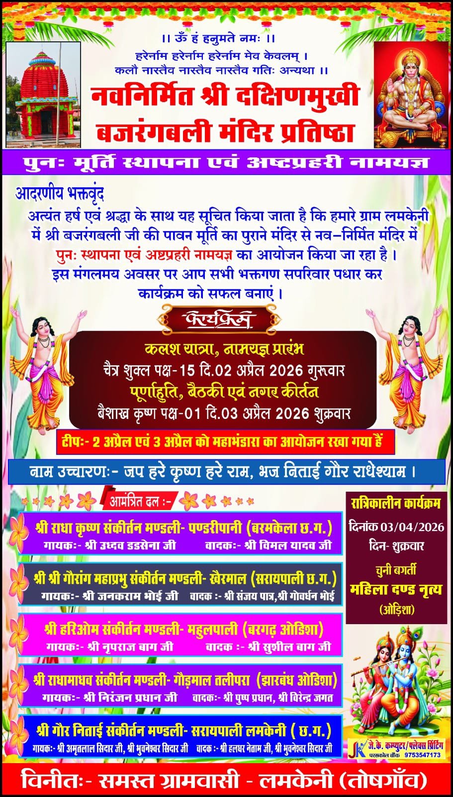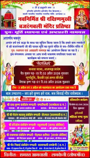Home/सरायपाली/लमकेनी में मूर्ति स्थापना व अष्टप्रहरी नामयज्ञ 2 अप्रैल को सरायपाली लमकेनी में मूर्ति स्थापना व अष्टप्रहरी नामयज्ञ 2 अप्रैल को काका खबरीलालMarch 21, 2026 2,253 Less than a minute Related Articles सरायपाली:केन्दूढार दुर्गा मंदिर के पास अज्ञात डम्फर वाहन चालक ने तेज लापरवाही पूर्वक चलाते बाईक को मारी ठोकर दो यूवकों की मौत March 21, 2026 AD#1 Tagsलमकेनी में मूर्ति स्थापना व अष्टप्रहरी नामयज्ञ 2 अप्रैल को काका खबरीलालMarch 21, 2026 2,253 Less than a minute Facebook Twitter WhatsApp Telegram Print