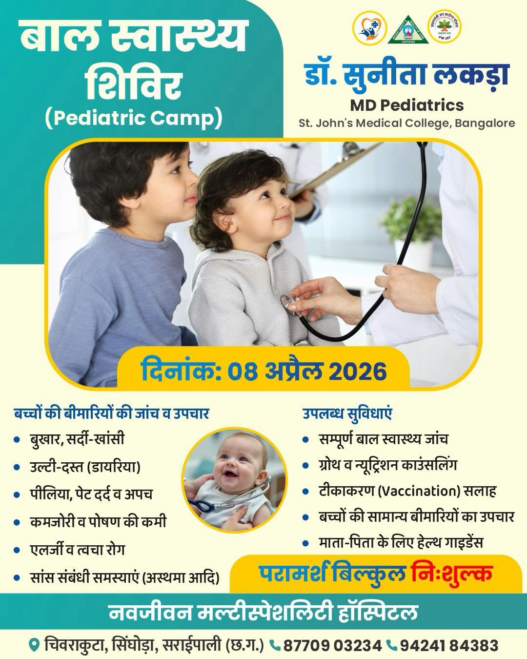 Home/छत्तीसगढ़/महासमुंद/सिंघोडा/नवजीवन मल्टीस्पेशलिटी हॉस्पिटल में 8 अप्रैल को बाल स्वास्थ्य शिविर का आयोजन सिंघोडा नवजीवन मल्टीस्पेशलिटी हॉस्पिटल में 8 अप्रैल को बाल स्वास्थ्य शिविर का आयोजन काका खबरीलालApril 5, 2026 2,106 Less than a minute Related Articles नवजीवन मल्टीस्पेशलिटी हॉस्पिटल की ओर से हनुमान जयंती की हार्दिक शुभकामनाएं April 2, 2026 AD#1 Tagsनवजीवन मल्टीस्पेशलिटी हॉस्पिटल में 8 मार्च को लिवर जांच शिविर का आयोजन काका खबरीलालApril 5, 2026 2,106 Less than a minute Facebook Twitter WhatsApp Telegram Print