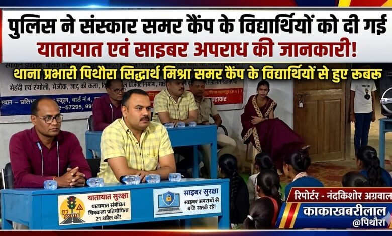 पुलिस ने संस्कार समर कैंप के विद्यार्थी को दी गई यातायात एवं साइबर अपराध की जानकारी, थाना प्रभारी पिथौरा सिद्धार्थ मिश्रा समर कैंप के विद्यार्थियों से हुए रूबरू