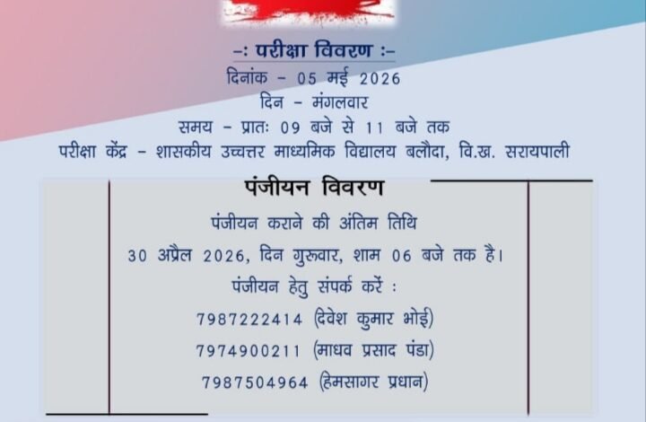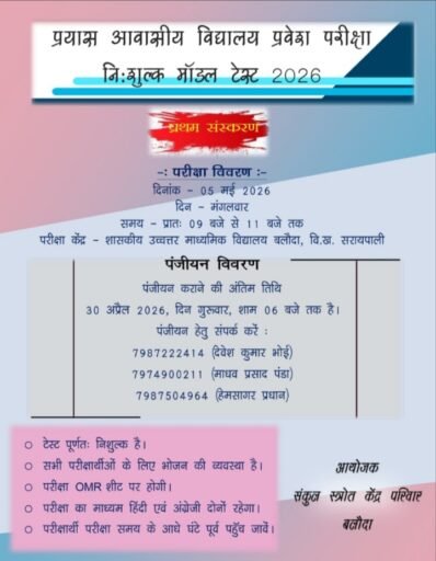 Home/सरायपाली/सरायपाली: प्रयास आवासीय विद्यालय प्रवेश परीक्षा नि: शुल्क मांडल टेस्ट 5 मई को जानिए डिटेल्स सरायपाली सरायपाली: प्रयास आवासीय विद्यालय प्रवेश परीक्षा नि: शुल्क मांडल टेस्ट 5 मई को जानिए डिटेल्स काका खबरीलालApril 13, 2026 2,195 Less than a minute Related Articles सरायपाली: गाली गलौज कर पति ने की पत्नी की पिटाई जानिए मामला April 13, 2026 AD#1 Tagsसरायपाली: प्रयास आवासीय विद्यालय प्रवेश परीक्षा नि: शुल्क मांडल टेस्ट 5 मई को जानिए डिटेल्स काका खबरीलालApril 13, 2026 2,195 Less than a minute Facebook Twitter WhatsApp Telegram Print