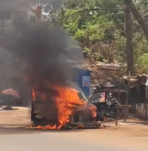 सरायपाली: गर्मी का कहर मारुति वैन में लगी आग