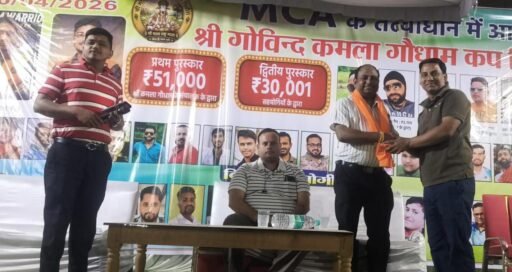 नंदकिशोर अग्रवाल, काकाखबरीलाल@ पिथौरा। श्री गोविंद कमला गौधाम मॉर्निंग क्रिकेट एसोसिएशन पिथौरा के तत्वाधान में श्री गोविंद कमला गौधाम कप रात्रि कालीन क्रिकेट प्रतियोगिता का आयोजन नगर के स्थानीय भगत सिंह खेल मैदान में आयोजित किया जा रहा है आपको बता दे यह आयोजन स्थानीय स्तर पर क्रिकेट प्रतिभाओं को प्रोत्साहित करने और ग्रामीण क्रिकेट को बढ़ावा देने के उद्देश्य से किया जा रहा है। जो यह प्रतियोगिता 20 अप्रैल से 1 मई तक आयोजित किया जा रहा है।जिसमें क्षेत्र के 12 टीमों ने हिस्सा लिया है।मैच के चौथे दिवस 11वां मैच के शुभारंभ कलमकार राजा अभिषेक शुक्ला ब्लॉक अध्यक्ष छग जर्नलिस्ट वेलफेयर यूनियन पिथौरा इकाई, गौरव चंद्राकर जिला सचिव छग जर्नलिस्ट वेलफेयर यूनियन जिला महासमुंद ने खिलाड़ियों से परिचय प्राप्त कर ताश उछालकर कर मैच का शुभारंभ किया गया। इस प्रतियोगिता के मुख्य अतिथि के रूप में उपस्थित राजा अभिषेक शुक्ला ने सभी खिलाड़ियों और आयोजन समिति के मनीष अग्रवाल, ,सौरभ अग्रवाल व टीम को बधाई देते हुए सभी से खेल भावना के साथ खेलने की अपील की। वही कार्यक्रम की अध्यक्षता कर रहे गौरव चंद्राकर ने खिलाड़ियों को संबोधित करते हुए कहा कि आयोजन समिति ने इतनी गर्मी रात्रिकालीन क्रिकेट प्रतियोगिता का आयोजन कर इस क्षेत्र के युवा खिलाड़ियों के मनोबल को बढ़ाया है। इस अवसर आयोजन समिति के मेंबर खिलाड़ी व खेल प्रेमी उपस्थित थे।