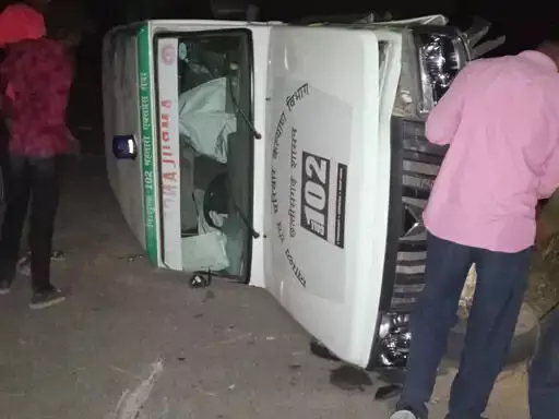 मरीज को लेने जा रही महतारी एक्सप्रेस पलटी