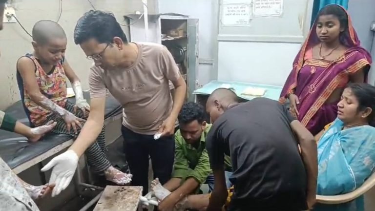 भिलाई के सुपेला थाना अंतर्गत एक घर में गैस सिलेंडर लीक होने से आग लग गई. इस घटना में मां के साथ 2 बच्चे झुलस गए. वहीं घटना की जानकारी मिलते ही पड़ोसी वहां पहुंचे और महिला और बच्चों को बचाया. घटना के बाद फौरन घायल मां और बच्चों को अस्पताल ले जाया गया. जहां तीनों का प्राथमिक उपचार किया गया. जानकारी के अनुसार, भिलाई के सुपेला थाना क्षेत्र मोती चौक स्थित घर में गैस सिलेंडर लीक होने से आग लग गई. महिला आशा नायक रविवार की रात अपने दो बच्चों के साथ किचन में दूध गर्म कर रही थी. इसी बीच सिलेंडर लीक हुआ और फैल गई. घटना में मां और बच्चों के कपड़े, चेहरा और हाथ पैर जल गए. वहीं चीख-पुकार सुनकर पड़ोसी आ गए और सभी ने मिलकर उनकी जान बचाई. उसके बाद घायलों को अस्पताललेजाकर इलाज करवाया गया.