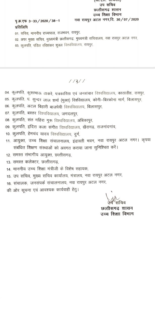 इस संबंध में आज राज्य शासन के उच्च शिक्षा विभाग द्वारा आदेश जारी कर दिया गया है।