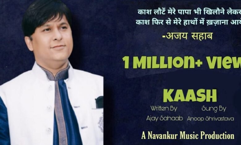 रायपुर (काकाखबरीलाल). मशहूर उर्दू शायर और छत्तीसगढ़ के जीएसटी कमिश्नर अजय पाण्डेय “सहाब” की अपने पिता के लिए लिखी ग़ज़ल “यूं ही हर बात पे हंसने का बहाना आए” को फेसबुक पर दस लाख से ज्यादा व्यू मिले हैं. यह उपलब्धि हासिल करने वाली यह पहली गैर फिल्मी प्राइवेट गजल बन गई है.एडिशनल डायरेक्टर जनरल अजय पाण्डेय “सहाब” के इस गजल के भोपाल के नवांकुर म्यूजिक के संस्थापक अनूप श्रीवास्तव ने अपने प्राइवेट एल्बम “काश” में गाई है. यह गजल सोशल मीडिया में धूम मचा रही है. अजय सहाब की गजल देश-विदेश के सभी नामचीन गायक सालों से गाते रहे हैं, जिनमें गजल सम्राट जगजीत सिंह, पंकज उधास, चंदन दास प्रमुख हैं. इन गायकों के साथ कई एल्बम निकल चुके हैं.