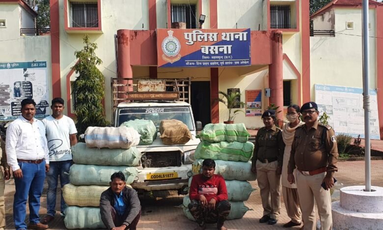 छत्तीसगढ राज्य केे सीमावर्ती राज्य ओडिशा से लगातार अवैध मादक पदार्थ गांजा का परिवहन महासमुंद के रास्ते किये जाने की सूचना पर पुलिस अधीक्षक महासमुन्द श्री दिव्यांग पटेल ने समस्त थाना/चैकी प्रभारियों कोे नशीली पदार्थ, अवैध शराब तथा अवैध मादक पदार्थ गांजा की तस्करी करने वाले लोगो के खिलाफ कार्यवाही तथा सघन चेकिंग अभियान करने हेतु निर्देशित किया गया था। व जिले मंे लगातार अवैध मादक पदार्थ के खिलाफ लगातार कार्यवाही की जा रही है। इसी तारतम्य दिनांक 23.11.2021 मुखबीर से सूचना मिली कि ओड़िशा से अवैध मादक पदार्थ गांजा का बडा खेप एक महिन्द्रा बोलेरो पीकप वाहन में ओडिशा से महासमुन्द होते हुये मध्यप्रदेश की ओर ले जाने वाला है। जिस पर तत्काल पुलिस अधीक्षक महासमुन्द, महोदय द्वारा सायबर सेल की टीम एवं थाना बसना की पुलिस टीम को त्वरित कार्यावाही करने हेतु निर्देशित किया व महासमुंद जिले में प्रवेश करने वाले समस्त पाईंटों पर भी बल तैनात कर संदिग्ध वाहन की जांच कर रही थी तभी पदमपुर ओडिशा से बसना महासमुन्द की तरफ से 01 सफेद रंग कि महिन्द्रा बोलेरो पीकप वाहन क्रमांक CG 04 LS 1877 आ रही थी। मुखबिर सूचना अनुसार उक्त महिन्द्रा बोलेरो पीकप वाहन एन.एच.53 रोड मोहन ढाबा के सामने पलसापाली बैरियर बसना के पास घेराबंदी कर रोका गया। वाहन चालक सीट पर बैठा व्यक्ति से नाम पता पुछने पर अपना नाम (01.) शिवम तिवारी पिता रमाकांत तिवारी उम्र 22 वर्ष सा. ग्राम बडवरा पोस्ट बीदा तहसील उचेहरा जिला सतना अमरपाटन मध्यप्रदेश तथा चालक सीट के बगल सीट में बैठा व्यक्ति अपना नाम (02.) प्रमोद तिवारी पिता शितलाप्रसाद तिवारी उम्र 37 वर्ष सा. कसियारी तहसील जेबा जिला रिवा मध्यप्रदेश का होना बताये। जिनसे ओड़िशा आने का कारण व वाहन में क्या लोड है पूछे जाने पर टाल मटोल व गोलमोल जवाब देने लगे जवाबो में विभिन्नता एवं असमानता पाये जाने पर संदेह प्रतीत हुआ है जिसके आधार पर वाहन की तलाशी ली गई। वाहन के पीछे ट्राॅली में हरी मिर्ची (green chilli) से पुरा भरा हुआ था। संदेह होने पर जिनको हटाकर वाहन की चेकिंग किया तो मिर्ची के नीचे प्लास्टिक बोरीयों में छिपाकर भारी मात्रा में अवैध मादक पदार्थ गांजा भरा हुआ मिला। उक्त सभी बोरियों को खोलकर देखने पर कुल 12 प्लास्टिक बोरीयों में 323 पैकेट प्रत्येक पैकेट में 1-1 किलो ग्राम का कुल 323 किलो ग्राम मादक पदार्थ गांजा मिला। वाहन पर अवैध गांजा परिवहन करते पाये जाने पर मौके पर दोनों आरोपियों को गिरफ्तार कर 03 क्विंटल 23 किलो ग्राम गांजा को वाहन सहित जप्त किया गया। आरोपी से गांजा के संबंध में पूछताछ करने पर उड़िसा से लाना और मध्यप्रदेश ले जाना बताये। आरोपियों द्वारा भारी मात्रा में गांजा परिवहन किये जाने पर आरोपीओं के विरूद्ध धारा 20(ख) एन