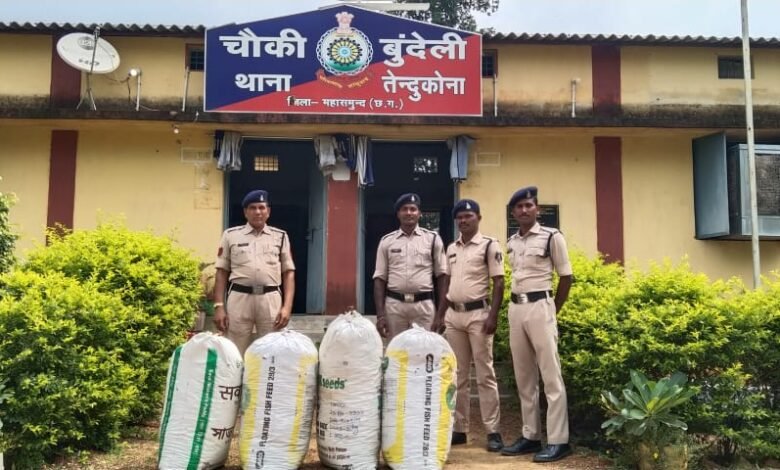साथ ही जिले के सरहदी क्षेत्र एवं प्रांत ओड़िसा से परिवहन होने वाली अवैध गांजा तस्करी रोकथाम हेतु अभियान चलाया जा रहा है। जिसके चलते आज मुखबीर से सूचना मिली की रात्रि में जोंक नदी के रास्ते अवैध गांजा का परिवहन होने वाला है। सूचना पर सायबर सेल एवं चैकी बुंदेली की पुलिस टीम संदिग्धों को नदी के पास जोकि नदी क्रास करने दिया और उनके द्वारा गांजा को डम्प कर रखने वाले स्थान को चिन्हांकित कर घेराबंदी किया गया। संदिग्ध व्यक्ति देवलाल बरिहा द्वारा पुलिस पार्टी को देखकर बोरी नदी किनारे गढ़ढा में फेंककर भागने लगा भागते समय उसका मोबाईल वही गिर गया तथा आरोपी रात्रि में अंधेरा का फायदा उठाते नदी पर कुद गया। पुलिस टीम भी उसे पकड़ने हेतु नदी पर छलांग लगाई किन्तु अंधेरा होने से कुछ दिखाई नही दे रहा था और मौके का फायदा उठाते आरोपी देवलाल बरिहा फरार हो गया। घटनास्थल से 88 कि0ग्रा0 अवैध मादक पदार्थ गांजा एवं आरोपी जिसपर से उसकी पहचान देवलाल बरिहा निवासी लिलेसर चौकी बुंदेली की गई व उसका मोबाईल फोन व कपड़े बरामद किया गया। जिसके आधार पर आरोपी की तलाश किया जा रहा है। पुलिस टीम 88 कि0ग्रा0 अवैध गांजा कीमती 17,60,000 जप्त कर अज्ञात आरोपी के विरूद्ध थाना तेन्दूकोना में अपराध 20बी एन0डी0पी0एस0 के तहत कार्यवाही की जा रही है। यह सम्पूर्ण कार्यवाही पुलिस अधीक्षक दिव्यांग पटेल के मार्गदर्शन में अति0 पुलिस अधीक्षक