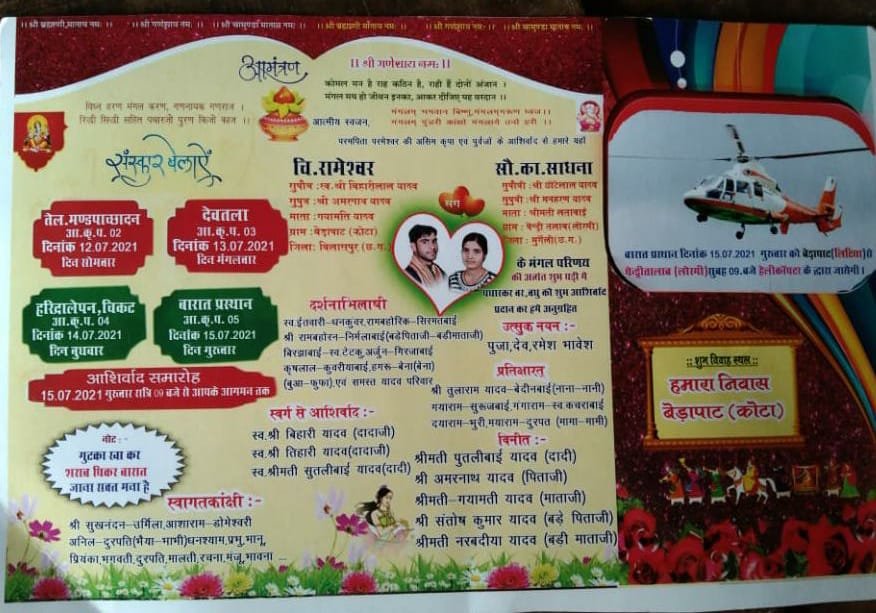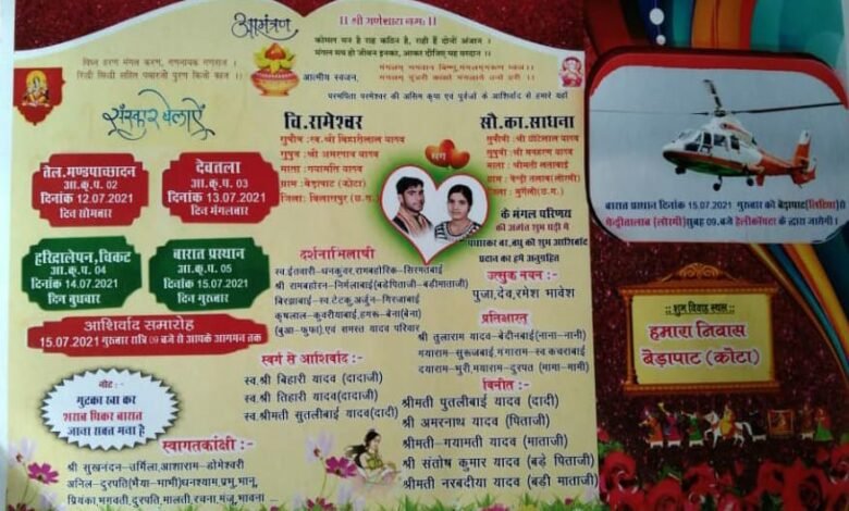 हैलीकाप्टर से आएंगे दुल्हा और बाराती गुटका शराब पीकर आए तो जुर्माना…
