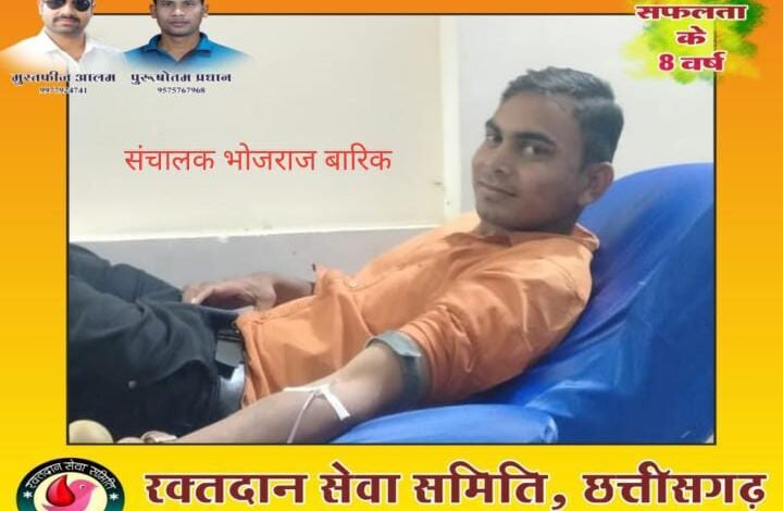 रक्तदान सेवा समिति के अध्यक्ष मुस्तफिज आलम और पुरुषोत्तम प्रधान सर जी द्वारा यह समिति को 8 वर्ष पहले चलाया गया और लगभग 82000 लोगों की जान अब तक बचाया जा चुका है इसमें मुख्य रूप से संचालक अनिस सुरजाल पवन सिदार रितेश साहू उमेश सिदारओम प्रकाश बघेल सोहन सिदार सुरेश साहू नवीन साहू आरती साहू आमीन ई भास्कर सोनू भास्कर गौरी साहू ममता साहू जी द्वारा इन समाज सेवा कर लोगो की जान बचाया जा रहा है