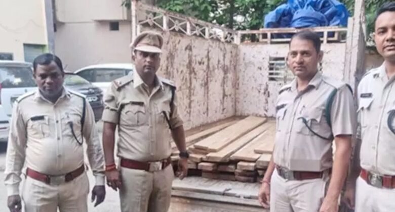 गश्त के दौरान पुलिस ने छोटा हाथी वाहन समेत 54 सागौन चिरान जब्त किया