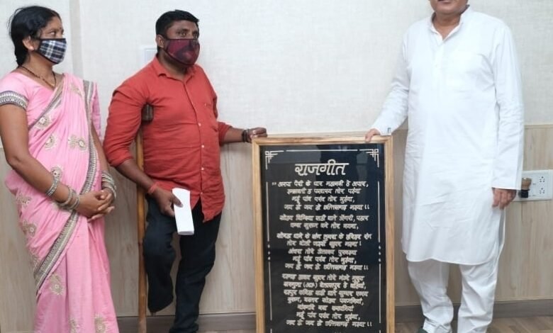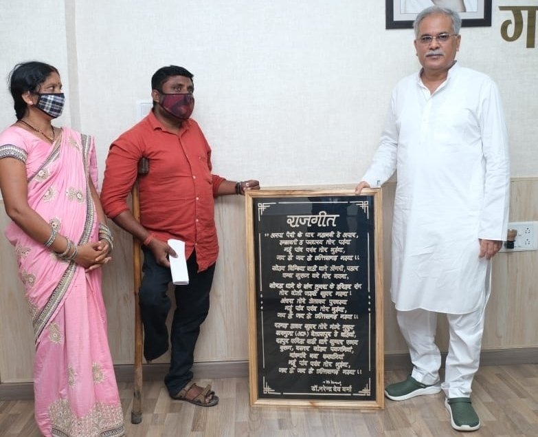 मुख्यमंत्री को दिव्यांग शिल्पकार ने लकड़ी पर उकेरे छत्तीसगढ़ के राजगीत की कलाकृति की भेंट की