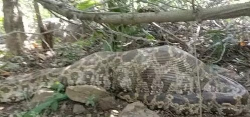 अजगर इतना बड़ा कि शिकार निगल गया कि हिल-डुल तक नहीं पा रहा