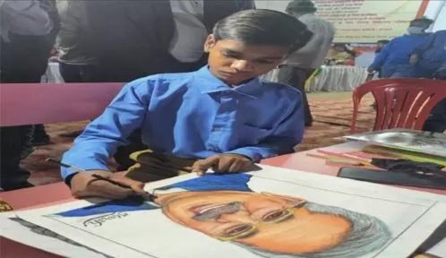 हर्ष की पेंटिंग बनाने का शौक भी रोचक है। वह प्राइमरी स्कूल में था, तब हीरो-हीरोइन की तस्वीरें देखा था। उन्हें देखकर वह कागज में उनकी तस्वीरें बनाने का प्रयास करने लगा। धीरे-धीरे उसका यह शौक कलाकारी में बदल गया और अब वह एक शानदार पेंटर की तरह स्केच बनाने लगा है। शुरूआत में वह हीरो-हीरोइन की ही तस्वीरें बनाता था। स्क्रैच सीखने के बाद अब वह महापुरुषों के साथ नेताओं की तस्वीरें उकरने लगा। हर्ष ने कहा कि मुझे बहुत खुशी हो रही है कि मेरी कलाकारी की हर कोई तारीफ कर रहा है। इससे मेरा प्रयास सार्थक हो रहा है और मैं अपने आप को गौरान्वित महसूस कर रहा हूं। पिता होटल में करते हैं काम हर्ष रजक की आर्थिक स्थिति कमजोर है। उसके पिता राघवेंद्र राव सभा भवन के सामने होटल में काम कर परिवार का गुजारा करते हैं। आर्थिक तंगी के बाद भी उसके पिता अपने बेटे की कला को निखारने के लिए मेहनत की कमाई से रबर पेंसिंल के साथ ही ड्राइंग चार्ट खरीद कर लाते हैं। ताकि उसके बेटे की कलाकारी को सामने ला सके। संसदीय सचिव मंडावी ने दिया पुरस्कृत सोमवार को राज्योत्सव में बतौर मुख्य अतिथि संसदीय सचिव इंद्र साह मंडावी शामिल हुए। उन्होंने प्रदर्शनी का निरीक्षण भी किया। इस दौरान उन्होंने छात्र हर्ष रजक के बनाए पेंटिंग को भी देखा। छात्र की इस प्रतिभा को देखकर इंद्र साह खुश हो गए। उन्होंने उसे 15 सौ रुपए देकर पुरस्कृत किया।