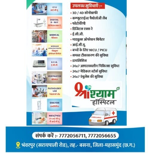 श्री श्याम हॉस्पिटल भंवरपुर : आईसीयू, डिजिटल एक्स – रे, डायलिसिस एंव विभिन्न चिकित्सा सुविधाओं के साथ 24×7 मेडिकल एंव एम्बुलेंस सुविधा उपलब्ध