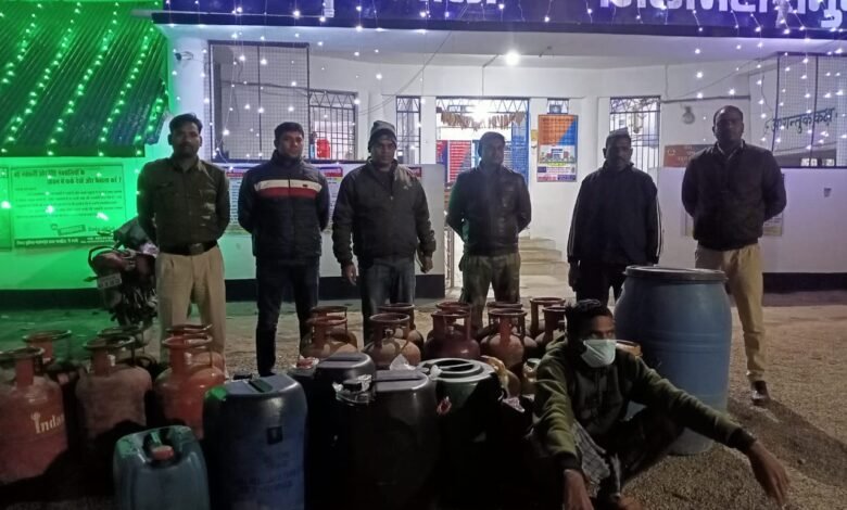 सरायपाली : अवैध रूप से रखे घरेलू गैस सिलेंडर तथा भारी मात्रा में डीजल का जखीरा बरामद
