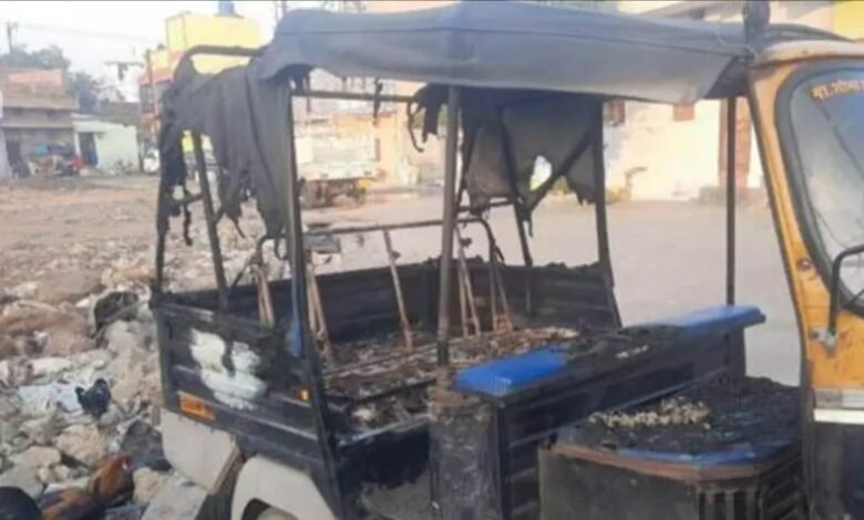 सवारी ऑटो में आगजनी, पुलिस तफ्तीश में जुटी