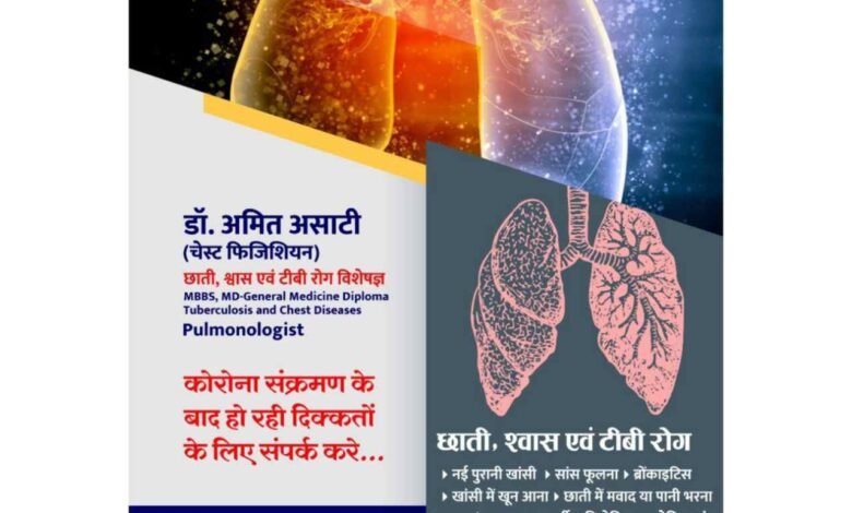 सरायपाली : कोरोना संक्रमण के बाद होने वाली दिक्कतों का इलाज के लिए प्रसिद्ध चेस्ट फिजिसियन डाक्टर अमित असाटी रहेंगे उपलब्ध