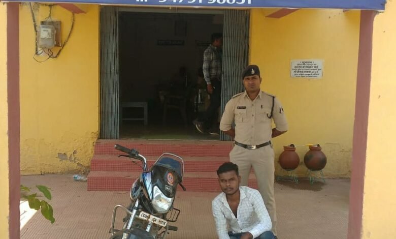 2 . एक काला नीला कलर का मोटर साइकिल एच एफ डीलक्स मोटर साइकिल क्रमांक सी जी 06 जी एच 9276 पुरानी इस्तेमाल कीमती ₹10000 कुल जुमला 18000 रुपये को गवाहो के समक्ष मुताबिक जप्ती पत्रक जप्त कर मौके पर सीलबंद कर कब्जा पुलिस लिया गया ।आरोपी का कृत्य धारा 34(2)आबकारी एक्ट का पाये जाने पर समय सदर में गिरफ्तार कर मामला अजमानतीय होने से आरोपी को ज्यूडिशियल रिमाण्ड पर न्यालयालय पेश किया गया है। आरोपी के विरुद्ध धारा 34(2)आबकारी एक्ट का अपराध पंजीबद्ध कर विवेचना में लिया गया है। सम्पूर्ण कार्यवाही में चौकी प्रभारी स्वराज त्रिपाठी, आरक्षक उत्तम साहू , जैलेन देवांगन का विशेष योगदान रहा।