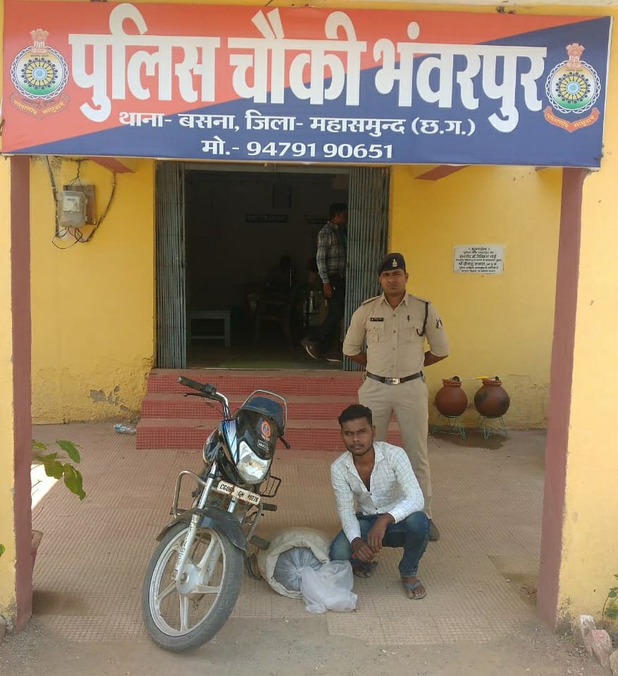 भंवरपुर(काकाखबरीलाल)। पुलिस अधीक्षक महासमुंद विवेक शुक्ला एवं अतिरिक्त पुलिस अधीक्षक मेघा टेम्भूरकर व अनुविभागीय अधिकारी (पुलिस) सरायपाली विकास पाटले ने जिले के सभी थाना प्रभारियों को अवैध शराब बिक्री एवं परिवहन के संबंध में कार्यवाही करने हेतु निर्देशित करने पर उक्त निर्देशों का पालन करते हुए चौकी भंवरपुर में दिनांक 29/04/2022 को मुखबिर की सूचना पर ग्राम चनाट दलदली के मध्य रोड पुल के पास नोहर सिदार पिता खगेश्वर सिदार उम्र 24 वर्ष ग्राम दलदली कब्जे से 1. एक सफेद रंग के प्लास्टिक बोरी के अंदर बड़ी झिल्ली में भरी करीबन 40 लीटर हाथ भट्ठी महुआ शराब कीमती करीबन 8000 रूपये