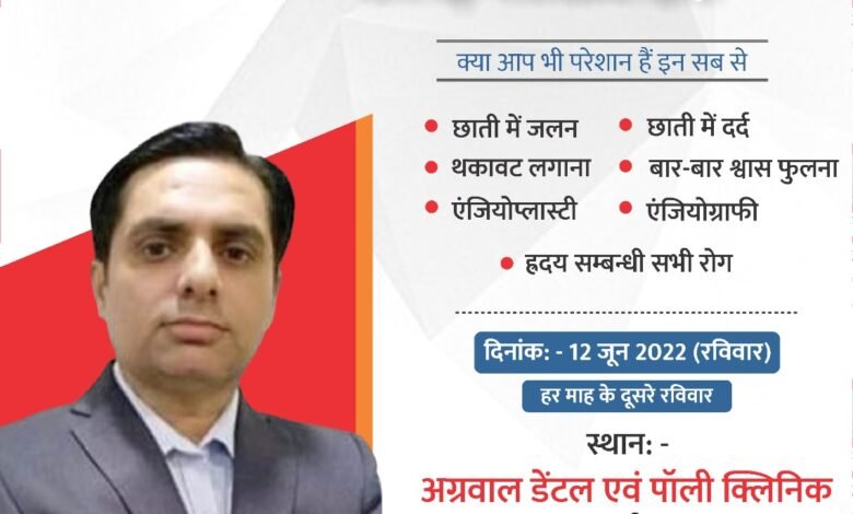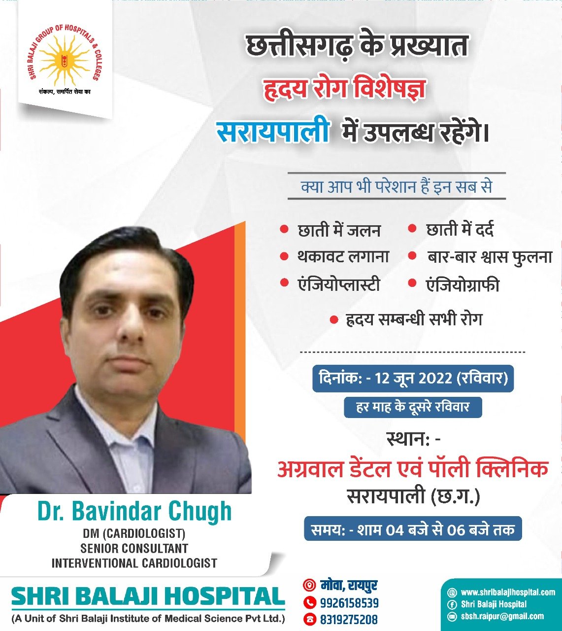 सरायपाली : 12 जून को उपलब्ध रहेंगे अग्रवाल डेंटल पालिक्लिनिक में ह्दय रोग विशेषज्ञ डाक्टर बलविंदर चुग