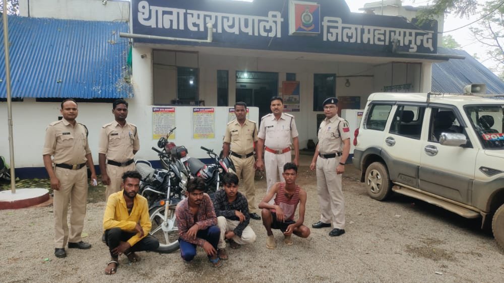 पुलिस अधीक्षक महासमुंद विवेक शुक्ला के निर्देशन में अतिरिक्त पुलिस अधीक्षक श्रीमती मेघा टेंबुलकर साहू एवं एसडीओपी सरायपाली श्री विकास पाटले के मार्गदर्शन में जिला महासमुंद के अपराध एवं अपराधिक गतिविधियों पर अंकुश लगाने के मुहिम के तारतम्य में जिले के समस्त थाना एवं चौकी प्रभारियों को जिले में होने वाले अपराधो पर अंकुश लगाने एवं त्वरित कार्यवाही करने हेतु निर्देशित किया गया था इसी क्रम में थाना सरायपाली में दिनाक 01/07/22 को प्रार्थी नरसिंह साहू पिता वृंदावन साहू जाति कोलता उम्र 40 वर्ष साकिन बाराडोली थाना सरायपाली उपस्थिति आकर रिपोर्ट दर्ज कराया की दिनांक 01/07/2022 को गांव के क्षमानिधि त्रिपाठी के साथ बच्चों के लिए पुस्तक कॉपी खरीदने अपने मोटरसाइकिल प्लैटिना क्रमांक सीजी 06 जीएन 4725 से सरायपाली गया था पुस्तक कॉपी व अन्य सामान खरीद कर वापस गांव जा रहा था शाम 4:00 बजे के आसपास हम लोग ग्राम झिलमिला बोंदा रोड बेरियर के पास पहुंचे थे की छमानिधि त्रिपाठी मोटरसाइकिल को रोककर बोला कि 2 मिनट रुको मैं गुटखा पान लेकर आता हूं कहकर मोटरसाइकिल को लेकर चौक की ओर चला गया उसी समय एक एचएफ डीलक्स मोटरसाइकिल क्रमांक सीजी 06 4638 में तीन-चार लड़के सवार होकर आए और मुझे अकेला देखकर उनमें से एक लड़का पतला सा पास रखे चाकू निकालकर मुझे धमकाने लगा व अन्य लड़के मेरे रियल कंपनी का टच मोबाइल लूटकर भाग गए हैं की रिर्पोट पर थाना सरायपाली में अपराध क्रमांक 271/22 धारा 392,34 कायम कर विवेचना में लिया गया घटना के तुरंत बाद पुलिस हरकत में आई तथा थाना प्रभारी आशीष वासनिक द्वारा टीम लेकर आरोपीयो की खोजबीन हेतु रवाना हुए जहा ज़रिए मुखबीर सूचना मिला कि ताजनगर झिलमिला निवासी कुछ संदिग्ध लड़के जो नशा सेवन कर कुछ दिनों से गलत कामों में संलिप्त है स्कूल के पास बैठकर नशा सिगरेट पी रहे हैं प्राप्त सूचना तस्दीकी हेतु ताज नगर स्थित स्कूल के पास जाकर 4 संदेही लड़के को हिरासत में लेकर थाना आया पृथक पृथक से पूछताछ करने पर अपना नाम (1) दीपक महापात्र पिता रूपेश महापात्र उम्र 20 वर्ष (2)दिनेश सिंह पिता आनंद सिंह राजपूत उम्र 19 वर्ष(3) इंदर सिंह पिता आनंद सिंह राजपूत उम्र 24 वर्ष (4)बबलू भोए पिता सनत भोए उम्र 24 वर्ष सभी साकीनान वार्ड नंबर 7 ताज नगर सरायपाली जिला महासमुंद का होना बताएं जो झिलमिला के पास एक व्यक्ति से चारो मिलकर लूट करना स्वीकार किए आरोपियों के संयुक्त कब्जे से घटना में प्रयुक्त एक चाकू मोटर साइकिल रियलमी मोबाइल बरामद कर आरोपी को गिरफ्तार कर विवेचना में लिया गया संपूर्ण कार्यवाही में एएसआई सोनचंद डहरिया आरक्षक विक्रम लहरे जगदीश मरकाम दिनेश बूढ़ेक व समस्त थाना स्टाफ का विशेष योगदान रहा