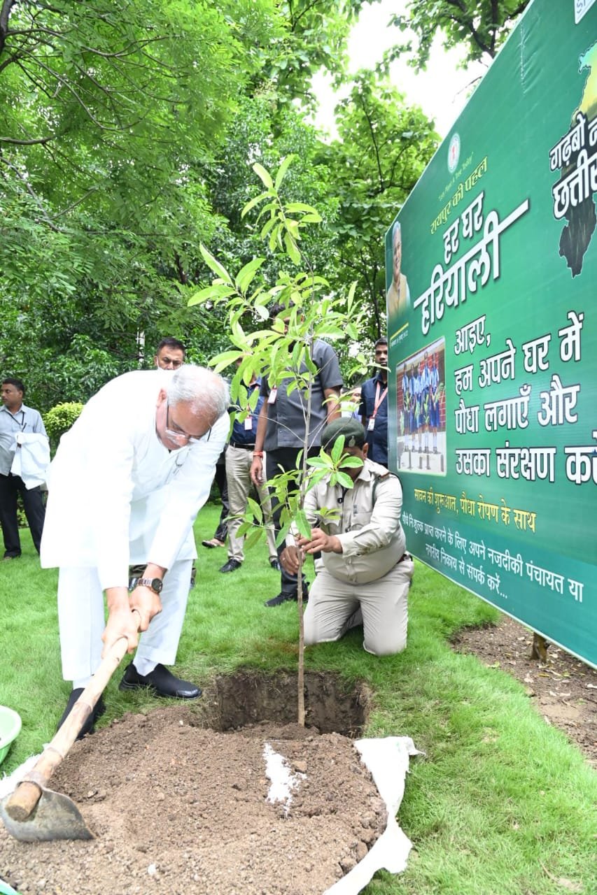 मुख्यमंत्री श्री भूपेश बघेल ने आज प्रथम सावन सोमवार को यहां अपने निवास में ‘हर घर हरियाली’ अभियान के तहत रुद्राक्ष का पौधा लगाया। इस अवसर पर संस्कृति मंत्री श्री अमरजीत भगत भी उपस्थित थे