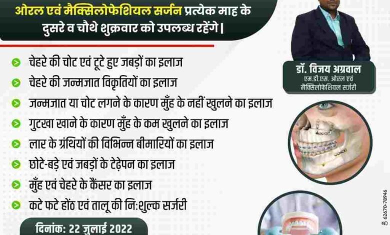22 जुलाई को सरायपाली ओम हॉस्पिटल में ओरल एवं मैक्सिलोफेशियल सर्जरी विशेषज्ञ डॉ विजय अग्रवाल रहेंगे उपस्थित