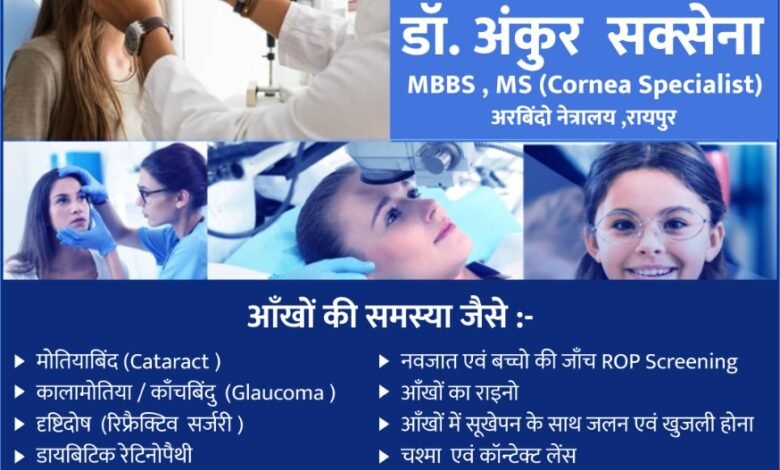 अग्रवाल नर्सिंग होम बसना में 27 जुलाई को उपलब्ध रहेंगे नेत्र रोग विशेषज्ञ डाक्टर अंकुर सक्सेना