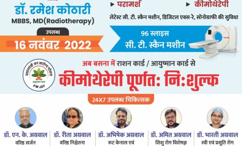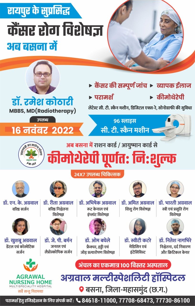 रायपुर के सुप्रसिद्ध कैंसर रोग विशेषज्ञ अब बसना में डॉ. रमेश कोठारी उपलब्ध रहेंगे 16 नवंबर को