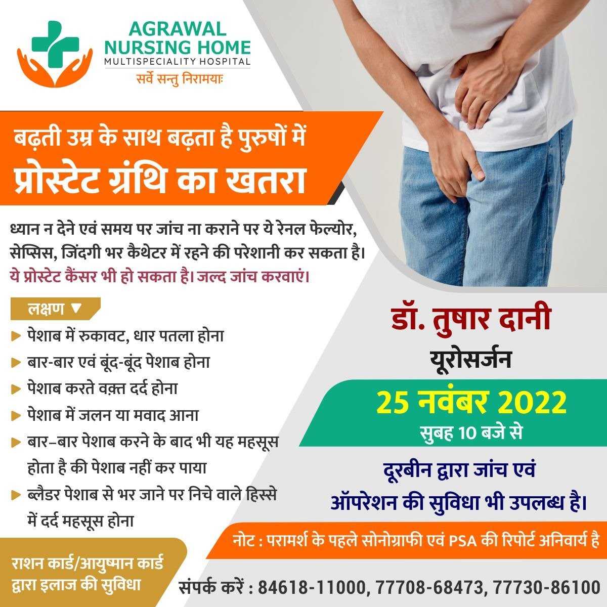 अग्रवाल नर्सिंग होम बसना में डॉ. तुषार दानी यूरोसर्जन 25 नवंबर को उपलब्ध रहेंगे