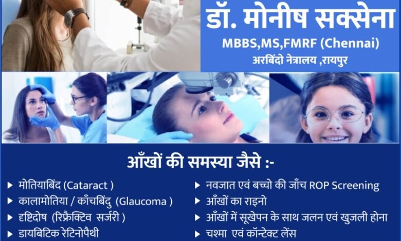 प्रख्यात नेत्र चिकित्सक डॉ. मोनीष सक्सेना 24 नवंबर को उपलब्ध रहेंगे अग्रवाल नर्सिंग होम बसना में