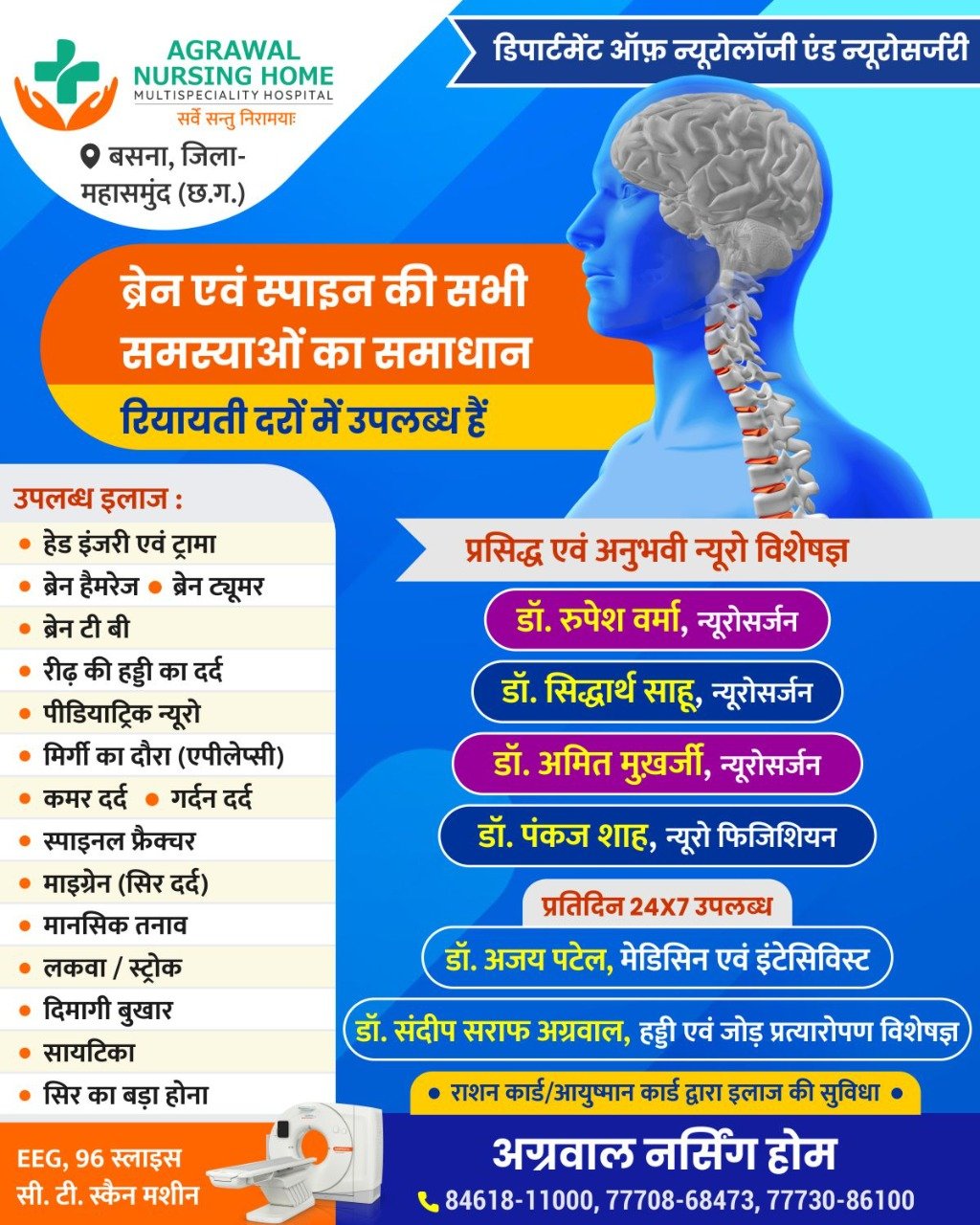 ब्रेन एवं स्पाइन की सभी समस्याओं का समाधान रियायती दरों में उपलब्ध हैं AGRAWAL NURSING HOME MULTISPECIALITY HOSPITAL
