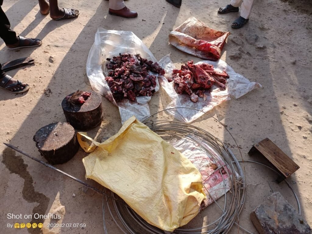 सरायपाली (काकाखबरीलाल). सरायपाली वन परिक्षेत्र अंतर्गत बेहरापाली के ग्राम पोंटापारा में भगवानों पिता मंगलू चौहान जाति गाड़ा 45 निवासी ग्राम पोटापारा सरायपाली के घर में अवैध शिकार कर वन्य प्राणी मांस रखने की सूचना पर ग्रामीणों , पंचगण एवं वन अधिकारी कर्मचारियों के साथ उसके घर के अंदर प्लास्टिक बोरे में रखे वन्य प्राणी जंगली सूअर का मांस 5 किलोग्राम रखा पाया गया। उसके पास मांस काटने के प्रयुक्त दो नग कत्तल (मांस काटने का औजार) एवं 2 नग खून लगा हुआ लकड़ी का कुंदा एवं 3,70 कि, ग्राम जी आई तार ज़ब्त किया गया। वन्य प्राणी संरक्षण अधिनियम 1972 की धारा 9, 50 ,51 एवं 52 के तहत कार्यवाही की जा रही है। उक्त व्यक्ति को दूसरे दिन न्यायालय सरायपाली में पेश किया जिसे न्यायिक अभिरक्षा में उप जल महासमुंद भेजा गया।