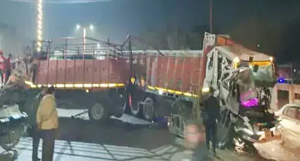 ट्रक का टायर फटा 3 लोगों की हालत नाजुक