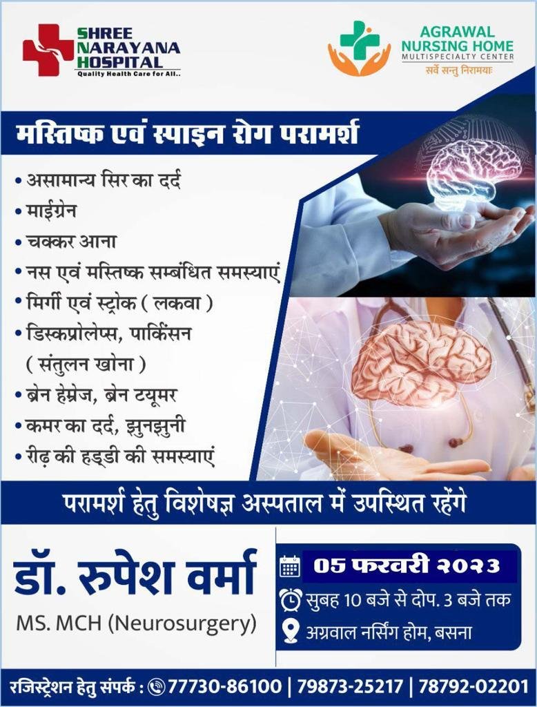 अग्रवाल नर्सिंग होम बसना में 5 फरवरी को उपलब्ध रहेंगे डॉ. रुपेश वर्मा Neurosurgery