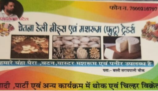 सरायपाली(काकाखबरीलाल). चेतना डेलीनिडस लेकर आये हैं पैरा फुटु बटन मशरूम के विक्रेता हर खुशी के मौके पर आंडर लिए जाते हैं तो देर किस बात आज ही संपर्क करे बस्ती सरायपाली चौक चेतना डेलीनिडस अधिक जानकारी के लिए संपर्क +917000216707