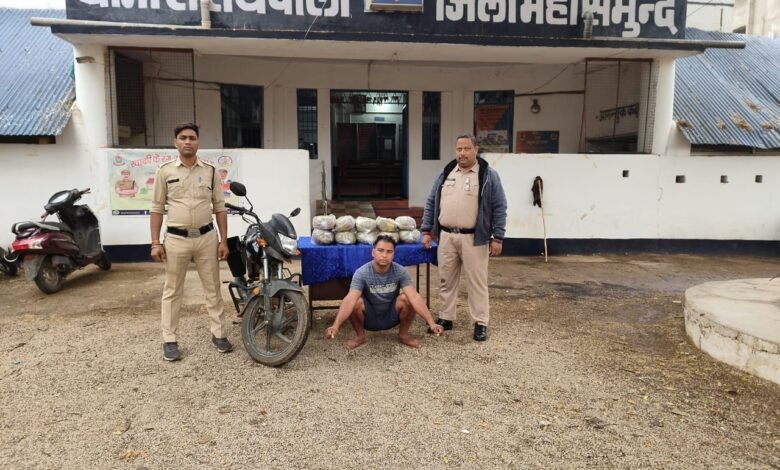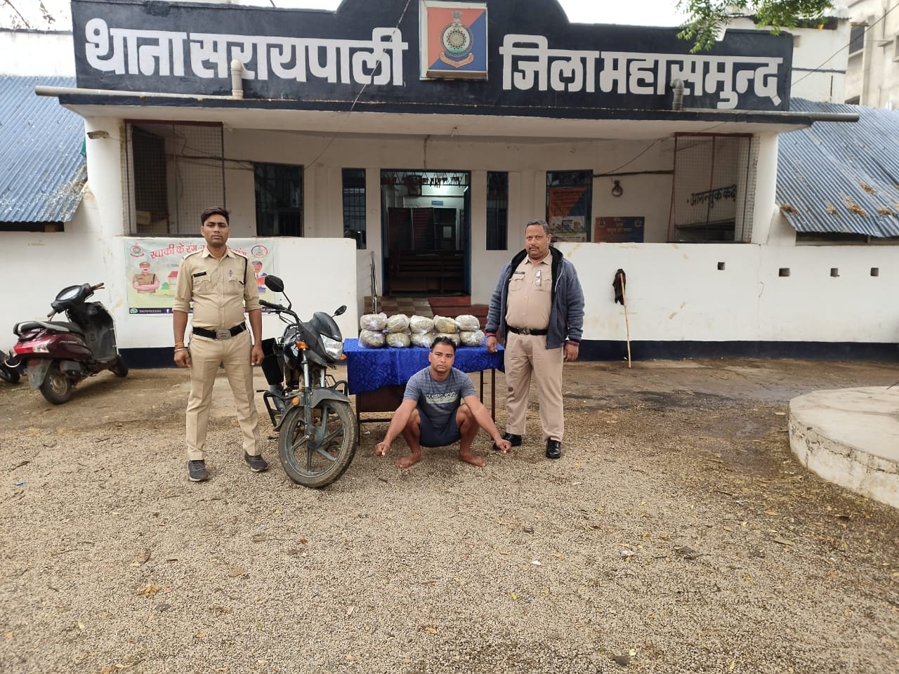 पुलिस अधीक्षक महासमुंद धर्मेन्द्र सिंह के निर्देशन में अतिरिक्त पुलिस अधीक्षक आकाश राव गिरेपुंजे एवं एसडीओपी सरायपाली अभिषेक केशरी के मार्गदर्शन में जिला महासमुंद के अपराध एवं अपराधिक गतिविधियों पर अंकुश लगाने के मुहिम के तारतम्य में जिले के समस्त थाना एवं चौकी प्रभारियों को जिले में अवैध मादक पदार्थों पर होने वाले अपराधो पर अंकुश लगाने हेतु निर्देशित किया गया था। अवैध गतिविधियों में संलिप्त लोगों के धरपकड़ के इसी क्रम में थाना सरायपाली के थाना प्रभारी आशीष वासनिक को जरिए मुखबिर के सुचना मिला की उड़ीसा की ओर से सरायपाली के रास्ते एक व्यक्ति अवैध रूप से गांजा परिवहन करने वाला है कि सूचना प्राप्त होने पर हमराह स्टाफ घटनास्थल सरायपाली जामबहलीन मंदिर के पास पहुंचकर घेराबंदी किये कुछ समय पश्चात उड़ीसा की ओर से एक मोटरसाइकिल आते दिखा जिसे घेराबंदी का रोका गया उक्त मोटरसाइकिल होंडा CD 110 DX क्रमांक OD 03 L 8579 था जिसमें सवार व्यक्ति को नाम पता पूछने पर अपना नाम दामोदर साहू पिता गौरंगा साहू उम्र 35 वर्ष साकिन बालीपटा थाना पटनागढ़ जिला बलांगीर उड़ीसा का रहने वाला बताया जिसकी तलाशी लेने पर एक सफेद रंग के प्लास्टिक बोरी में 10 पैकेट मादक पदार्थ गांजा होना पाया गया जिससे पूछताछ करने पर गांजा को उड़ीसा से लाना बताया जिसके कब्जे से(1) 10 किलो अवैध मादक पदार्थ गांजा कीमती 1,00,000 रूपये (2) एक मोटरसाइकिल होंडा CD 110 DX क्रमांक OD 03 L 8579 पुरानी इस्तेमाली कीमती 40,000 रूपये कुल जुमला कीमती 140,000 रूपये को समक्ष गवाहन जप्त कर आरोपी का कृत्य अपराध धारा 20(b) ndps act का पाए जाने से आरोपी को गिरफ्तार कर थाना सरायपाली में अपराध क्रमांक 96/23, धारा 20 (ख) नारकोटिक एक्ट कायम कर रिमांड पर भेजा जाना हैं संपूर्ण कार्यवाही मे एएसआई डामन लाल नागवंशी, सोनचंद डहरिया प्रधान आरक्षक कौशिक चेलक आरक्षक मदन सेठ प्रकाश साहू, , मोहन साहू, व समस्त स्टाफ थाना सरायपाली का योगदान रहा।