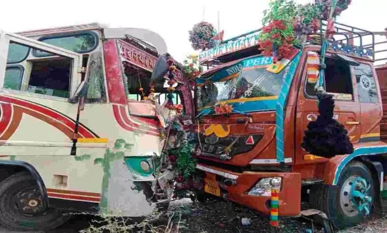 ट्रक और यात्री बस में जोरदार भिड़ंत 12 लोग घायल